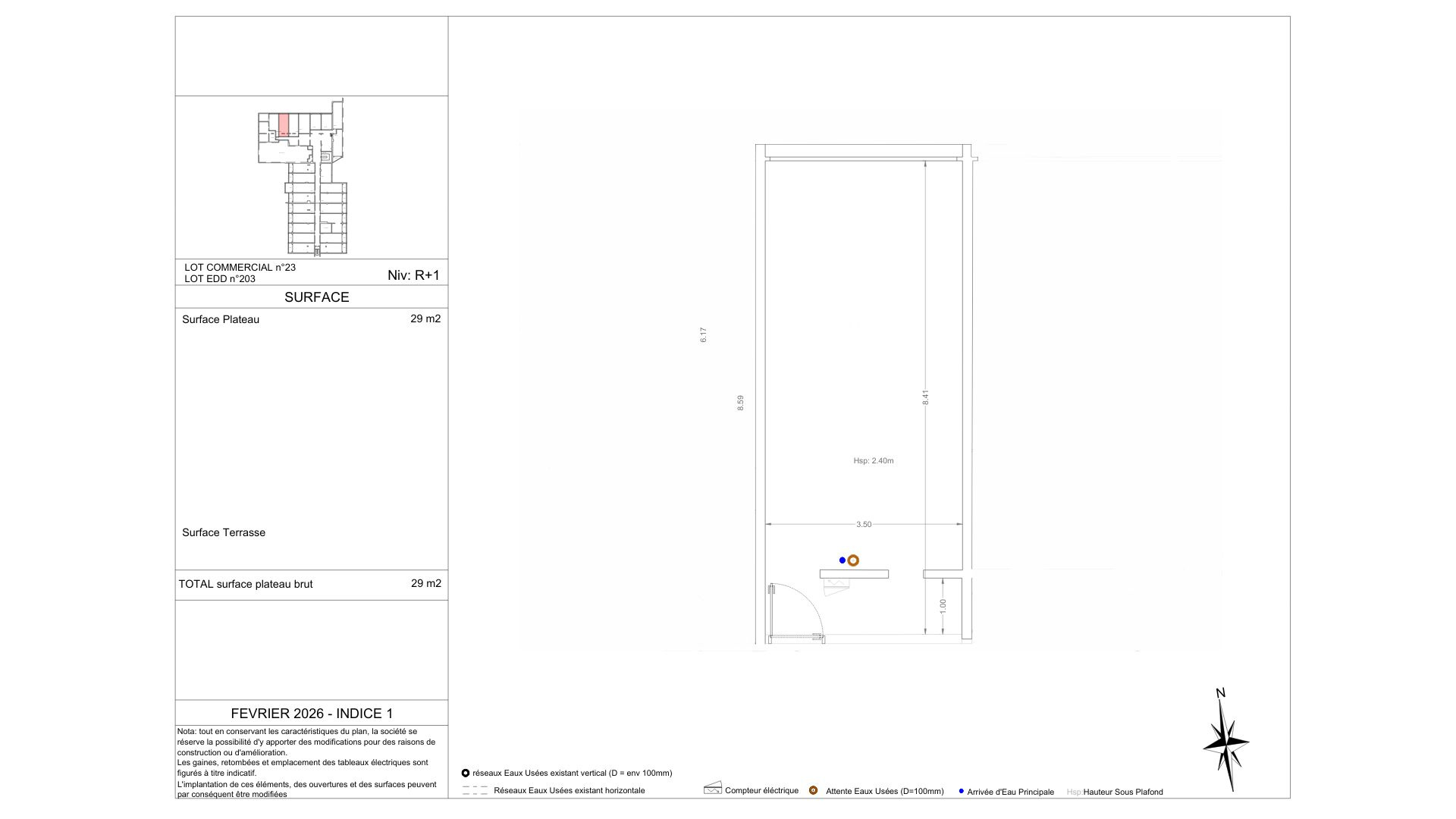 - Plateau brut de 29 m², à aménager selon vos besoins ou selon une configuration proposée.-