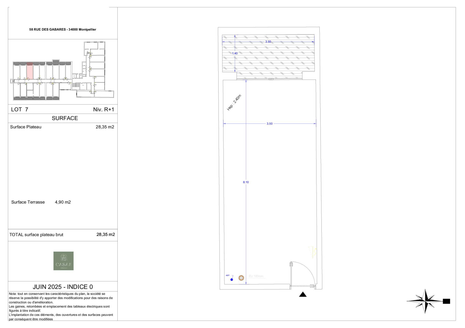 - Plateau brut de 28,35 m², à aménager selon vos besoins ou selon une configuration proposée.