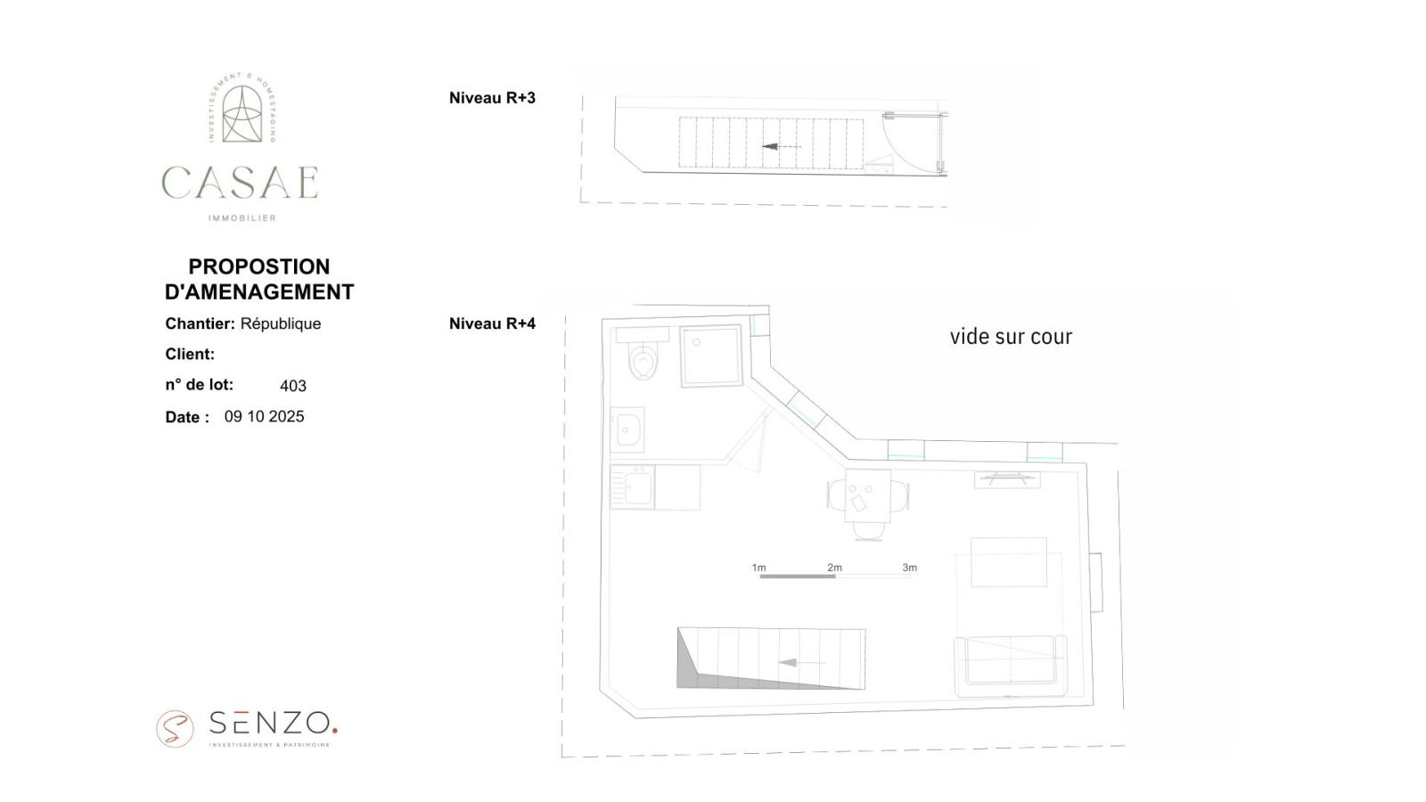 Nous proposons 13 logements aux 3e et 4e étages : 9 studios et 4 T2, avec possibilité d’aménagement intérieur sur mesure.