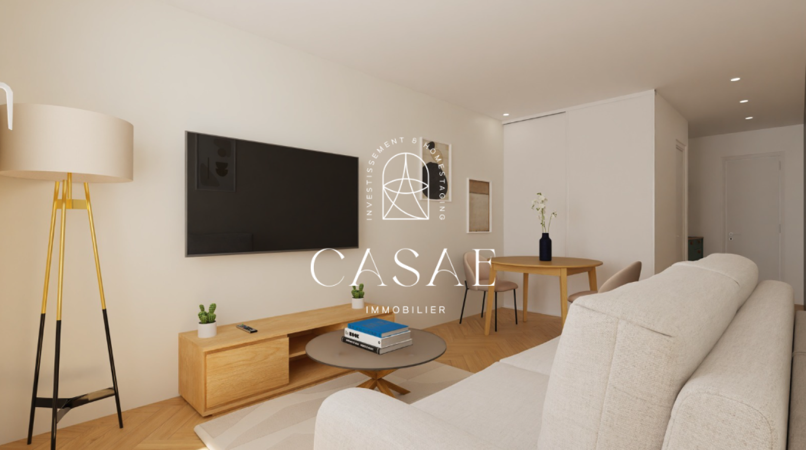 - Volume pensé pour intégrer du mobilier intelligent : lit escamotable, rangements intégrés, cuisine épurée
