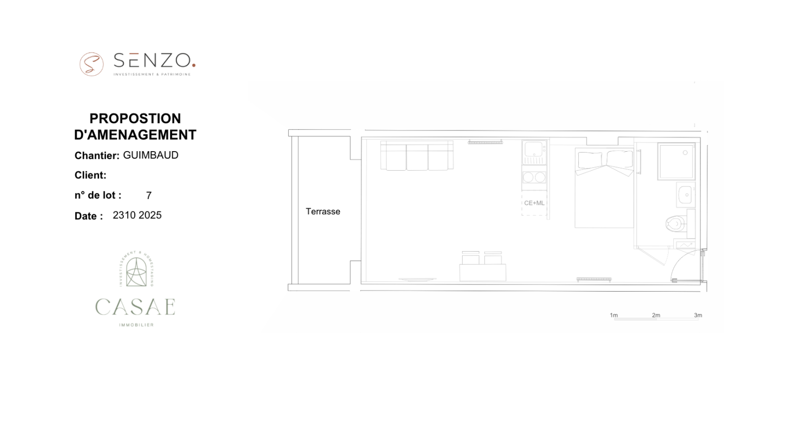 - Plateau brut de 28,35 m² avec une terrasse de 5 m², à aménager selon vos besoins ou selon une configuration proposée.