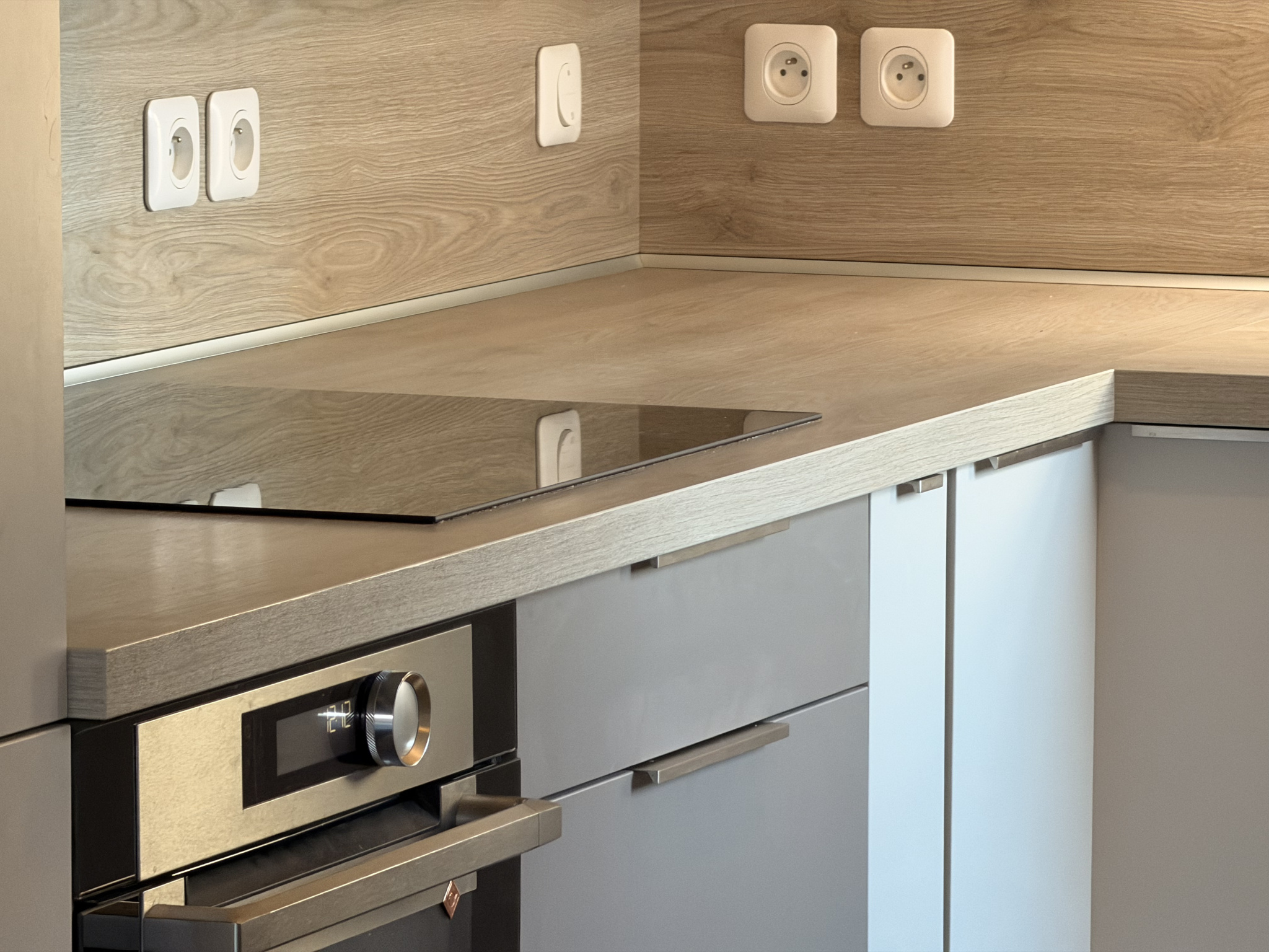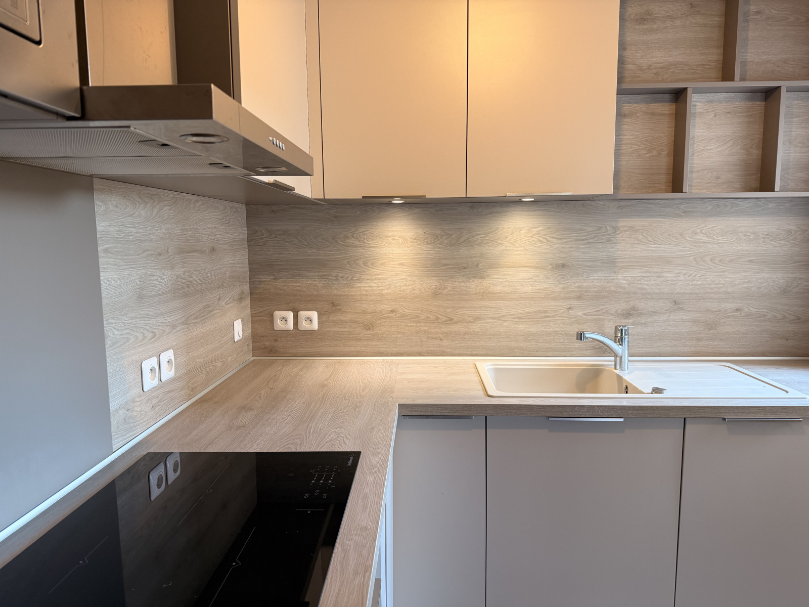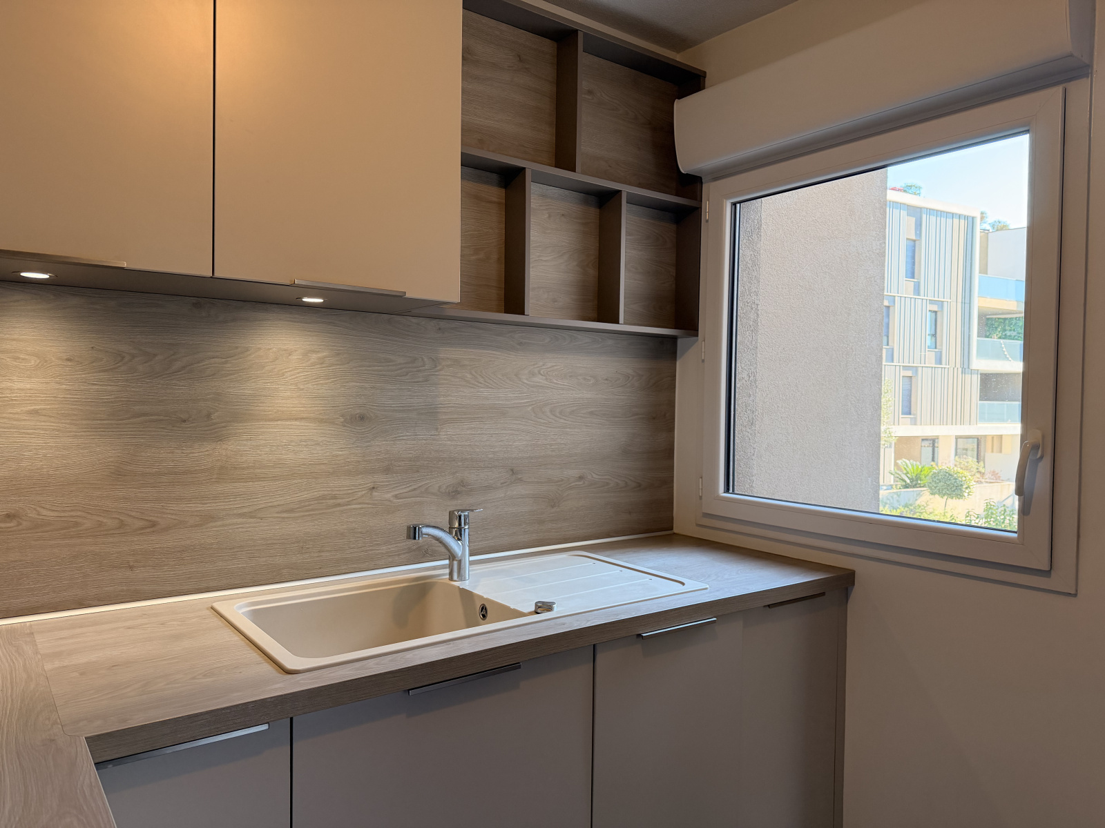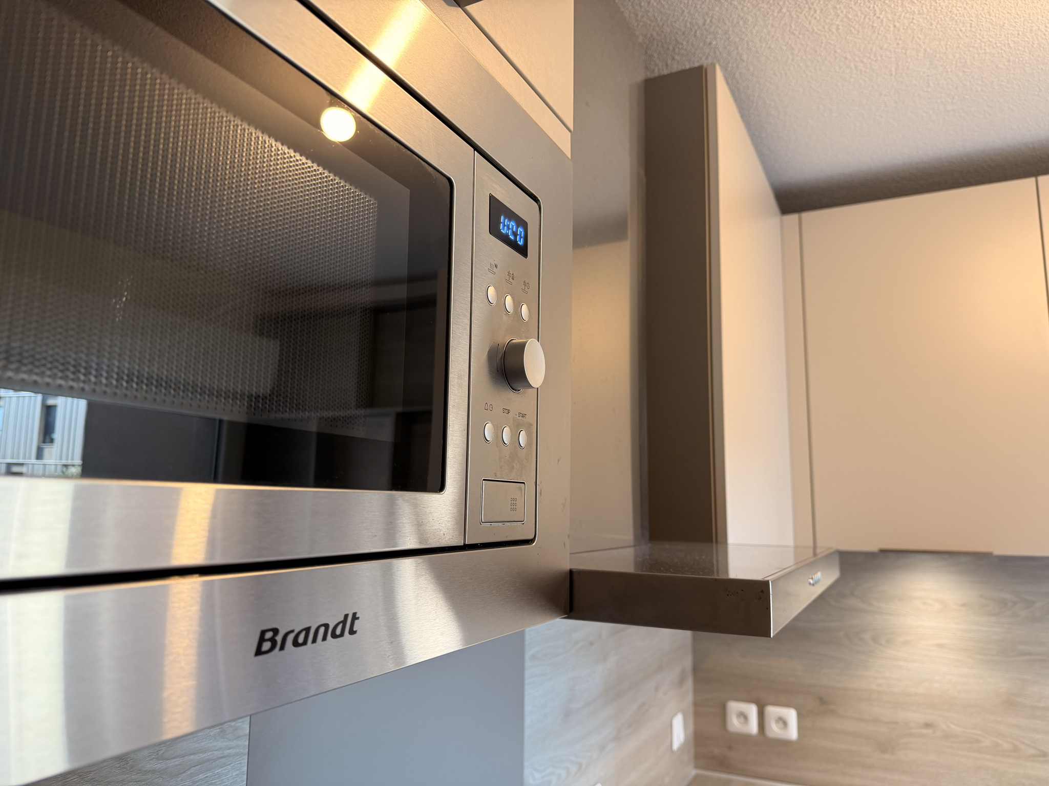 Situé au 1er étage, l’appartement propose une pièce de vie de près de 24 m² baignée de lumière, avec cuisine entièrement aménagée et équipée.